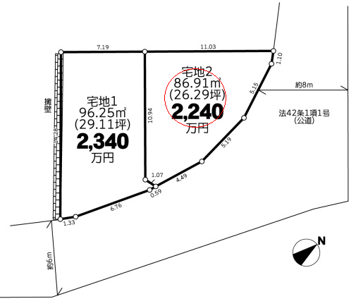 | 接道(全て) | 北東 6m(幅員) 公道 |