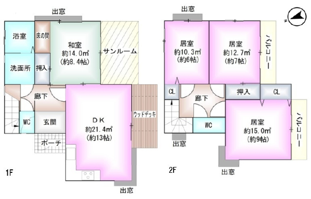| 間取詳細 | (1階)DK13.0、(1階)和8.4、(2階)洋9.0、(2階)洋7.0、(2階)洋6.0 |