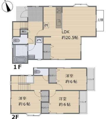 | 間取詳細 | (1階)LDK20.5、(2階)洋6.0、(2階)洋6.0、(2階)洋6.0 |