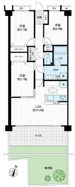 | 間取詳細 | (2階)LDK14.2、(2階)洋5.7、(2階)洋5.7、(2階)洋4.9 |