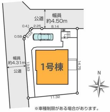 | 接道(全て) | 北 4.5m(幅員) 公道 西 4.31m(幅員) 公道 |