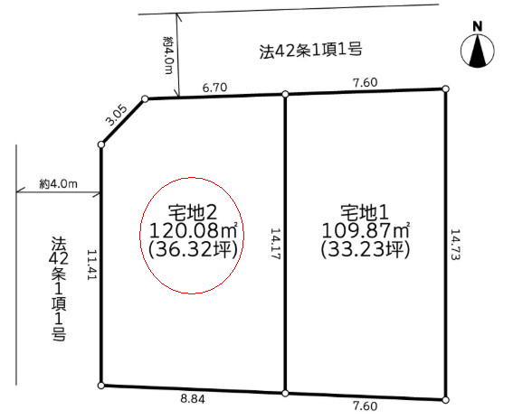 | 接道(全て) | 西 4m(幅員) 公道 北 4m(幅員) 公道 |