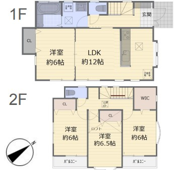 (1階)LDK12.0、(1階)洋6.0、(2階)洋6.5、(2階)洋6.0、(2階)洋6.0 |