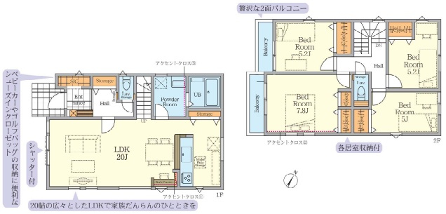 (1階)LDK20.0、(2階)洋7.8、(2階)洋5.2、(2階)洋5.2、(2階)洋5.0 |