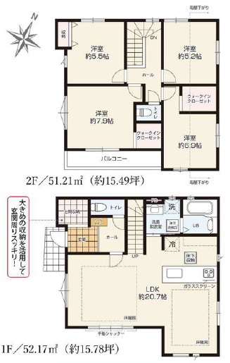 (1階)LDK20.7、(2階)洋7.9、(2階)洋6.9、(2階)洋5.5、(2階)洋5.2 |