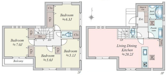 (1階)LDK20.2、(2階)洋7.0、(2階)洋6.3、(2階)洋5.1、(2階)洋5.0 |