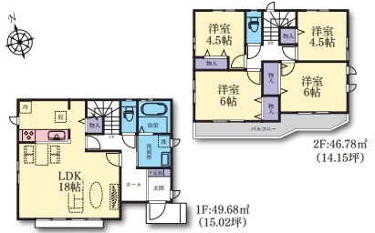 (1階)LDK18.0、(2階)洋6.0、(2階)洋6.0、(2階)洋4.5 |